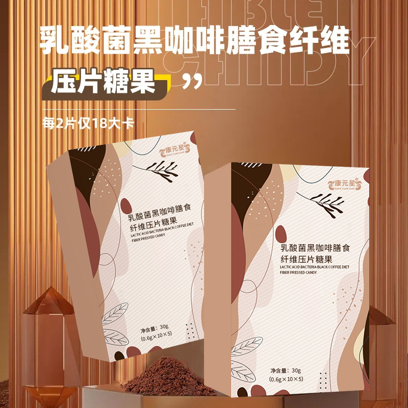 【产品名称】乳酸菌黑咖啡膳食纤维压片糖果