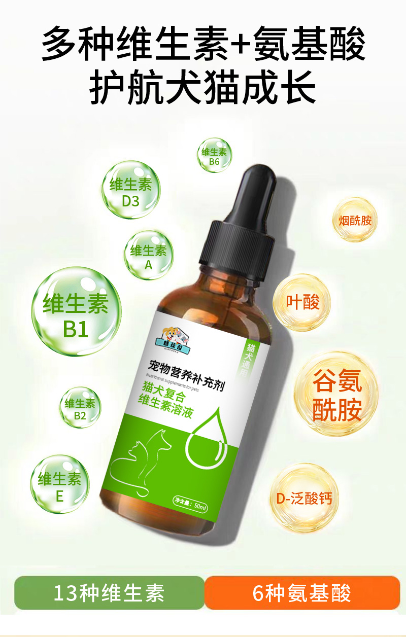 猫犬复合维生素溶液贴牌代加工宠物营养补充...