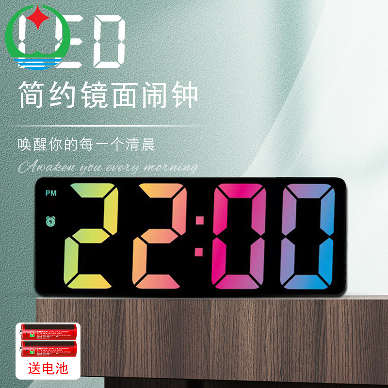 LED简约境面闹钟,彩色字体闹钟,大屏幕...
