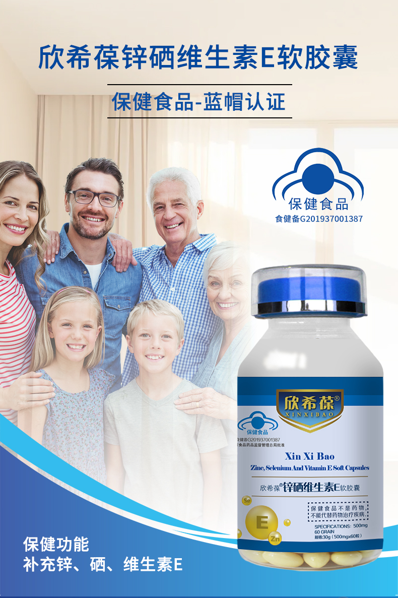OEM加工定制欣希葆锌硒维生素E软胶囊