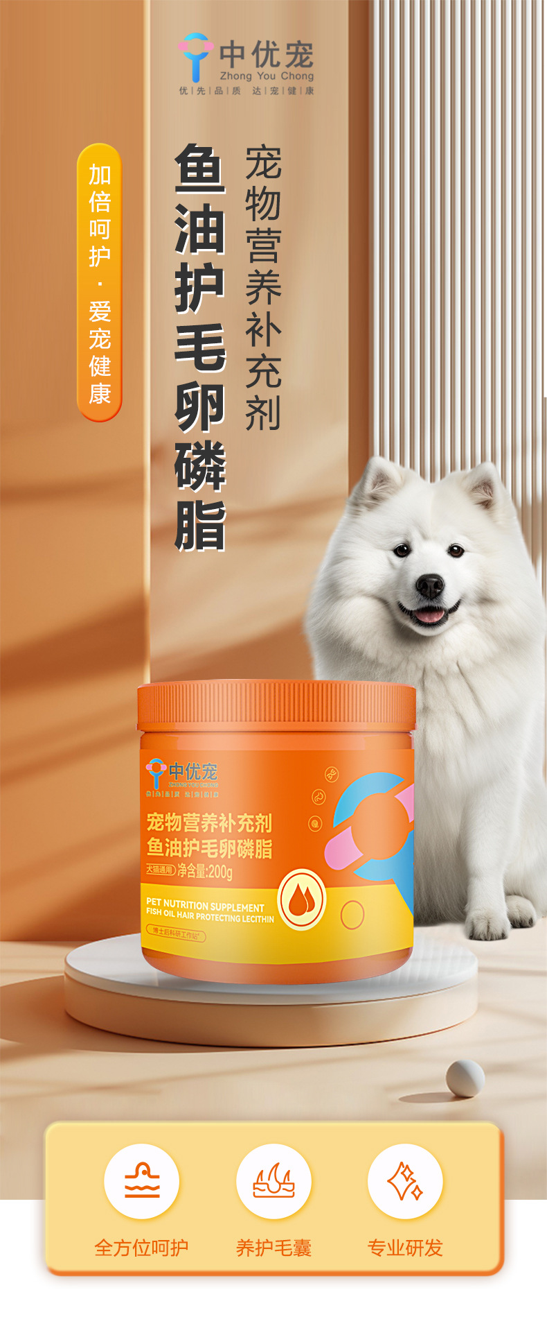 宠物营养补充剂鱼油护毛卵磷脂o...