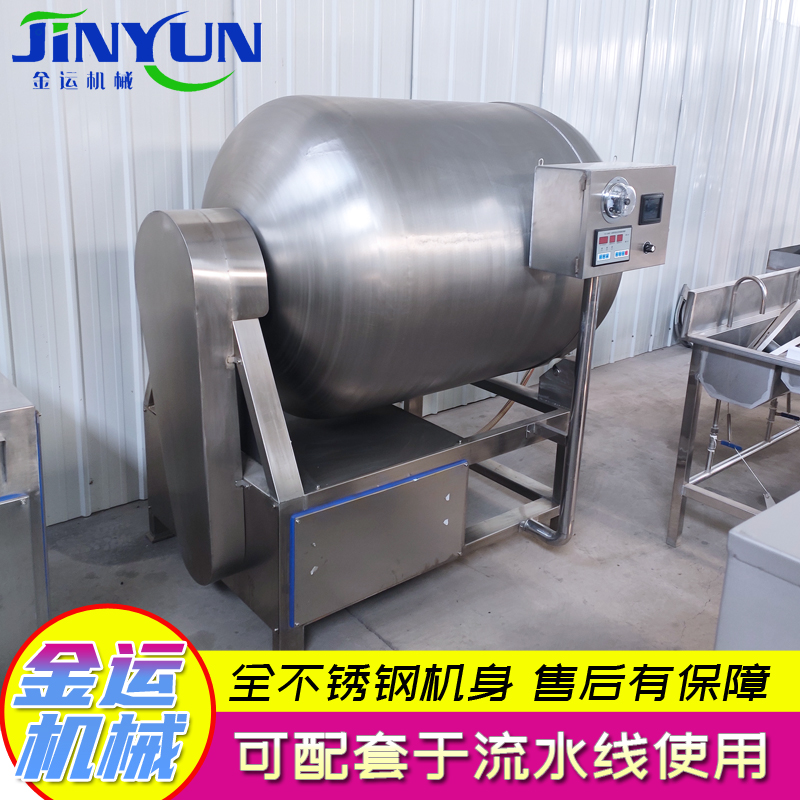 真空滚揉机在真空状态能对食物一定程度的保鲜,通过适当的转动,搅拌食品,有规律地拍打食品,所谓“揉压作用”“真空作用”能增加食品的含水量,令食品增加风味,柔软,可口,好卖。我厂生产的真空滚揉机等食品设备全部采用食品卫生设计,材料选进口不锈钢优良板材,确保卫生清洁。