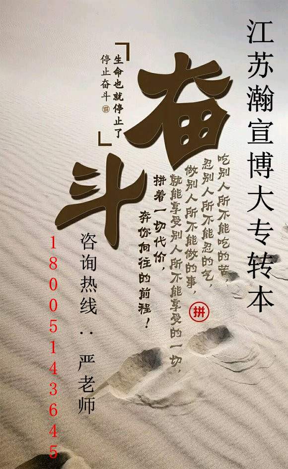 江苏瀚宣博大专转本是一家专做五年制专转本培训的辅导机构已有十五年,汇集了众多转本经验丰富的名师,辅导英语和各主考院校所有专业课,全年滚动开班,随到随学,1-5年级高职生均可报名参加,一次报名可循环上课至考前;考虑到高职的同学们底子薄弱,英语的辅导从基础开始教起,先夯实基础再提优拔高,达到快速提分的目的;专业课是辅导各主考院校所有专业,根据各院校专业考纲,由授课老师根据考试的重难点进行针对性的辅导和查漏补缺,做到高效辅导,让考生深刻了解五年制专转本考试的难度及侧重点。更多详情及预约免费试听联系1800微514同3645严老师,领取招生简章及预约免费试听课。
