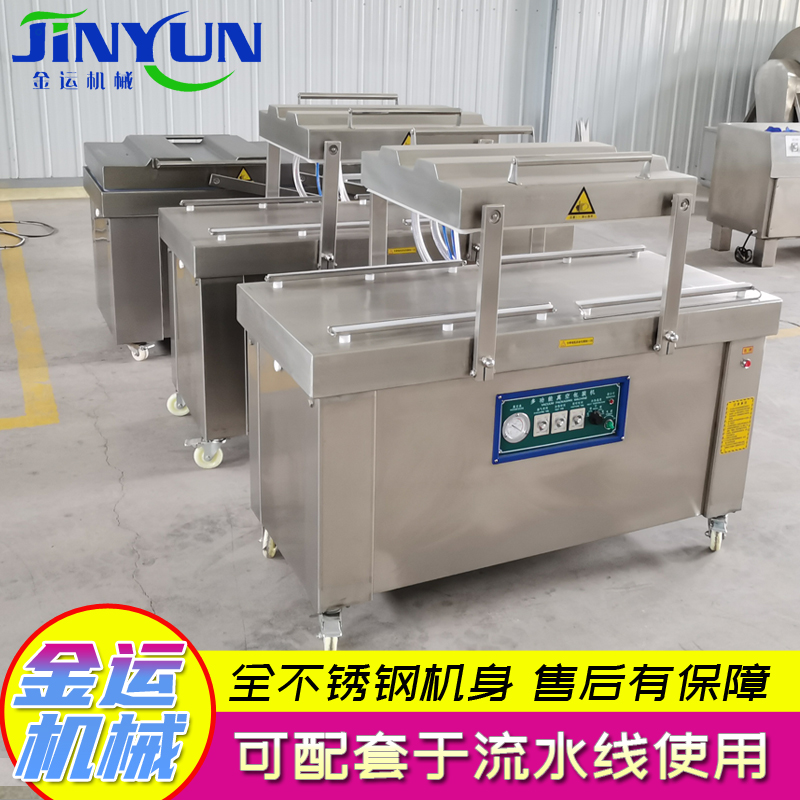 描述:双室真空包装机是包装机的一种,利用其真空室对包装进行抽空,然后再充入惰性气体以达到防腐保质的目的。真空包装机是将包装袋内抽成真空,然后封口,使袋内形成真空,从而可使包装物品达到隔氧、保鲜、防潮、防锈、防蚀、防虫、防污染等的目的,有效的延长保质期、保鲜期、便于存放和运输。食品级SUS304不锈钢制作,不氧化、不生锈。性能稳定,不变形。全程自动化控制,简单易操作。真空度高,寿命长。