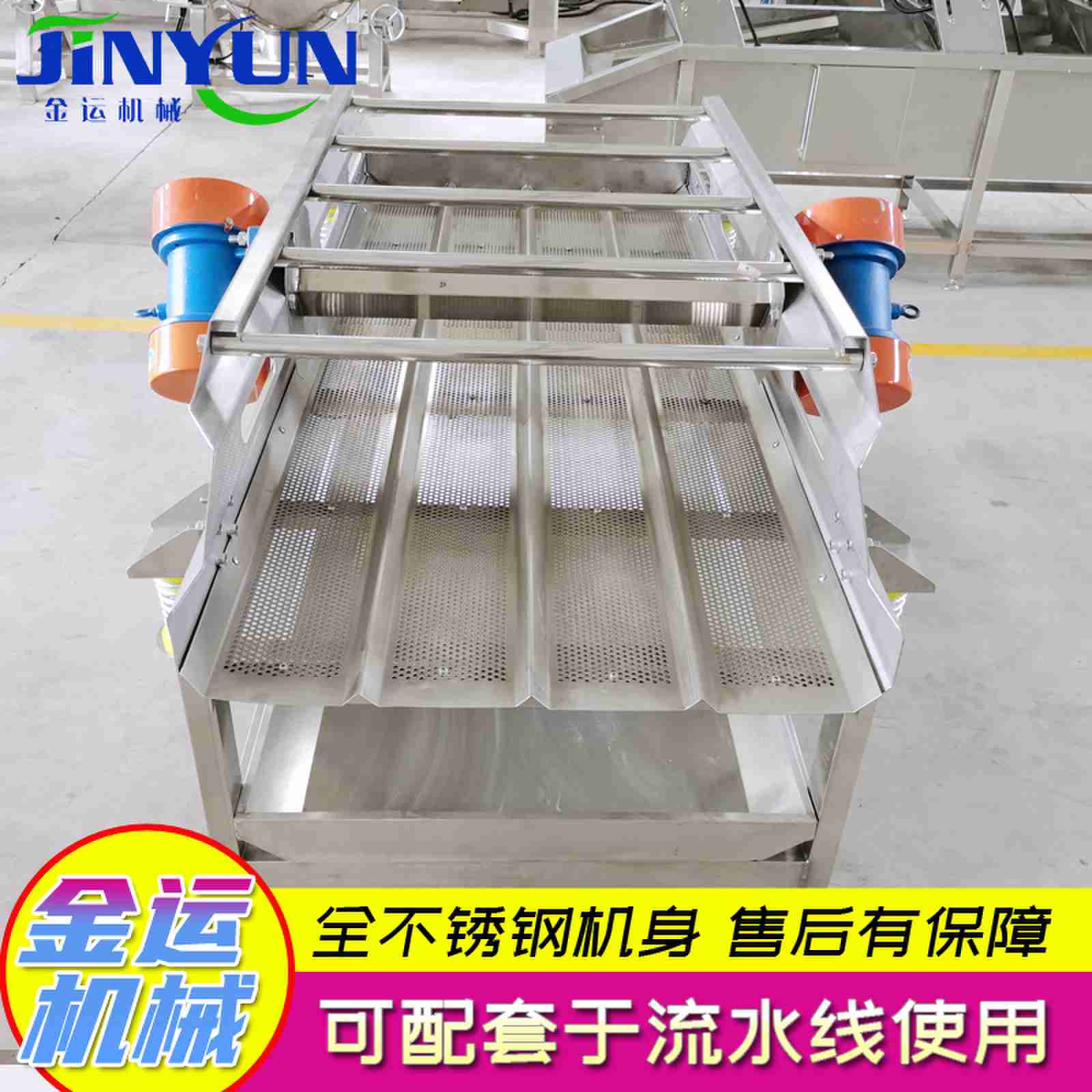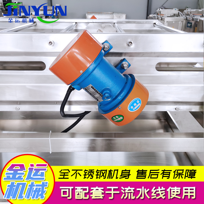描述:震动沥水机是利用震动泵所产生的往复旋型振动而工作的。清洗后的袋装食品经输送到震动沥水机上面,通过震动泵的震动将包装袋表面的水分震落,可以加速包装袋的除水工作。 振动沥水机采用全不锈钢制造,由激振器产生振动源,使物料在筛网上抛起等以此起到振动布料等作用,此设备建议配入流水线作业,效果更佳 。