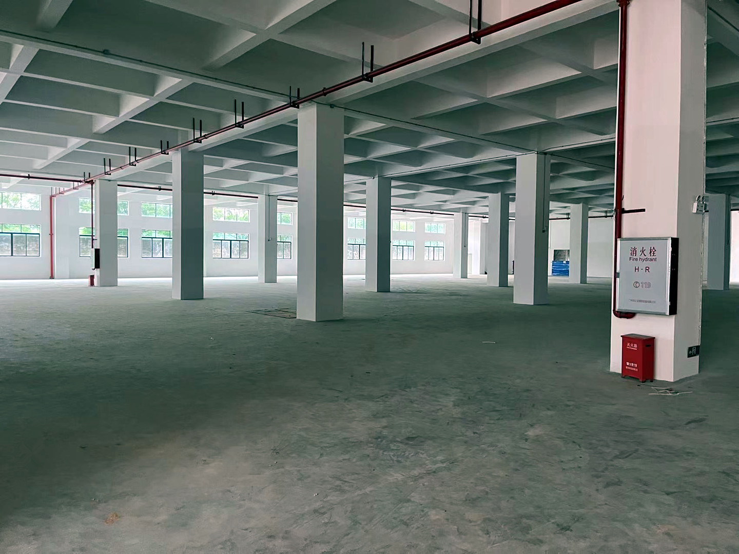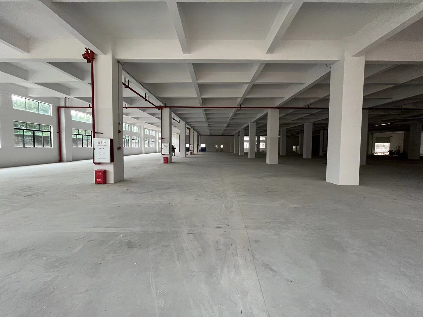 B栋标准楼房5层,首层高度6米,每层5500㎡,共29600平方,柱间距7到10米,配备10条5吨梯井。