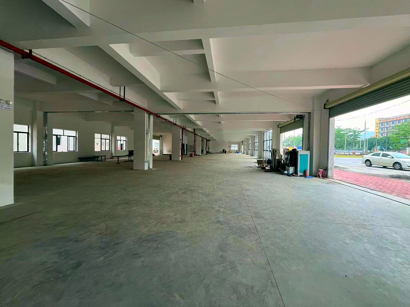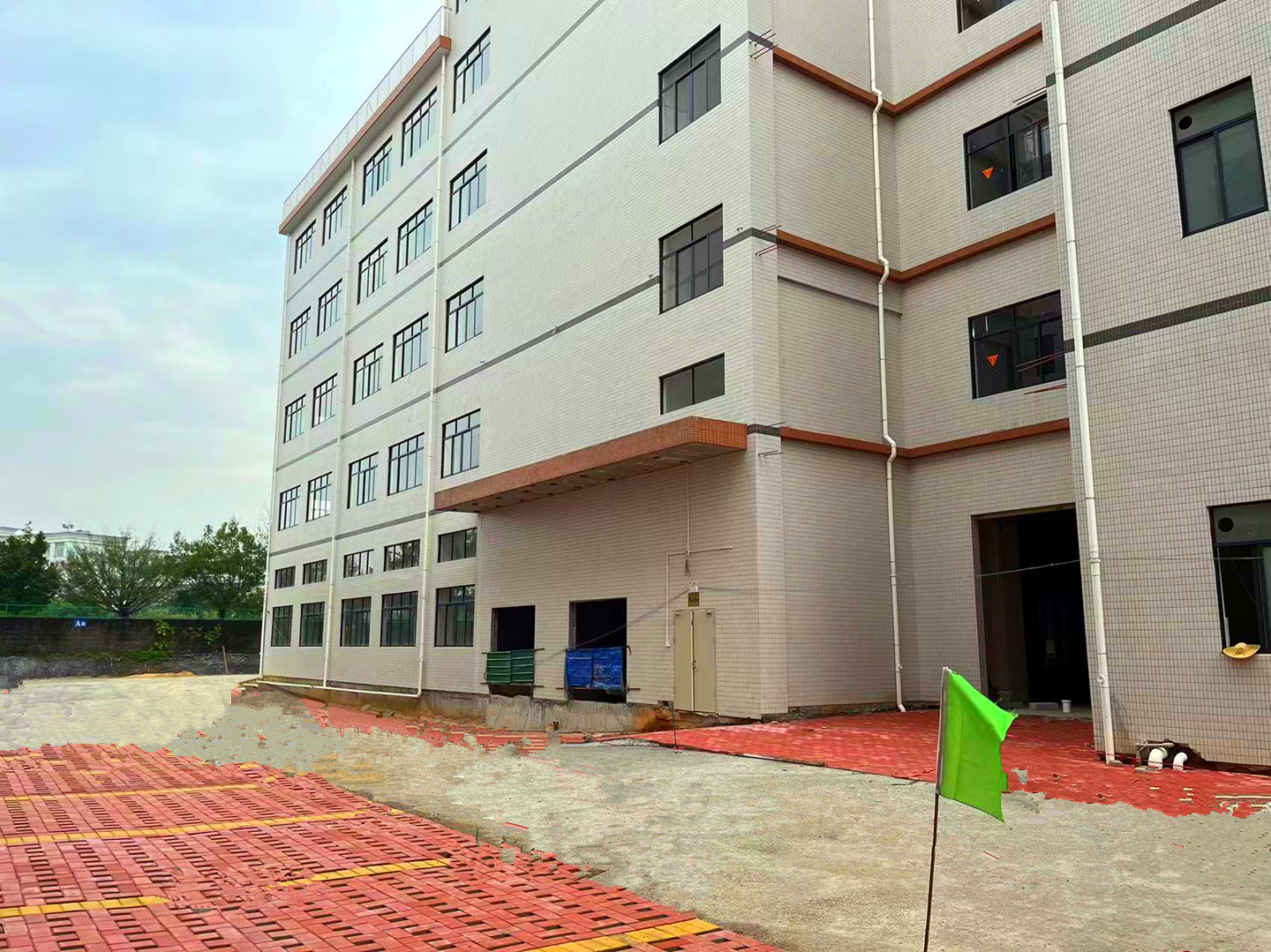 A栋标准楼房地上6层,地下1层停车场,首层高4.8米,每层1730㎡,共12560平方,柱间距7到10米,配备4条3吨梯井。