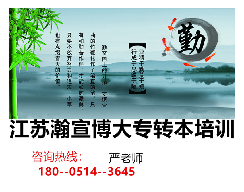 江苏瀚宣博大五年制专转本辅导班招生中……所有科目全面开课,从基础测试、学习规划、课程安排、学习·进度、查漏补缺、刷题等等一步步来推进。同学和家长有空余时间可以先来实地考察上课环境、师资情况及录取率后再做考虑,加入瀚宣博大对转本还是有很大保障的。开设周末班、单科班、寒暑假集训班、考前冲刺班等多个班次,并根据考生不同学科、不同基础和学习能力强弱的差别进行分班授课,做到因材施教,查漏补缺,培优、补良、拔高,快速提高学生的学习能力,提高备考的效率。更多江苏五年制专转本详情请联系1800微514同3645严老师,预约试听课程并领取招生简章一份。