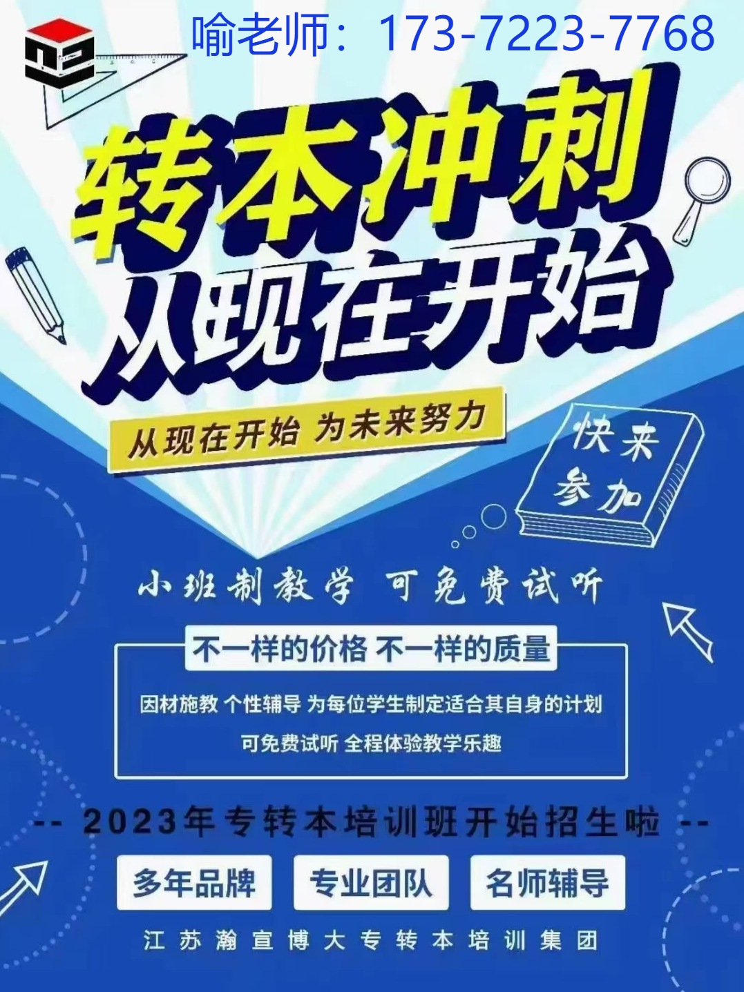 五年制专转本辅导班选江苏瀚宣博大专转本学校,辅导英语和所有主考院校专业课,针对考试基础和报考的目标院校辅导,开设五年制专转本周末辅导班,寒暑假集训班,考前辅导班,主考院校签约班等不同班次,满足不同学员要求,具体详情可来校区实地考察了解!1-5年级想要备考五年制专转本的高职学生均可报名,越早报名,课时量越多,基础越扎实。更多专转本详细信息可联系瀚宣博大喻老师173(微)7223(同)7768,领取招生简章预约试听课。