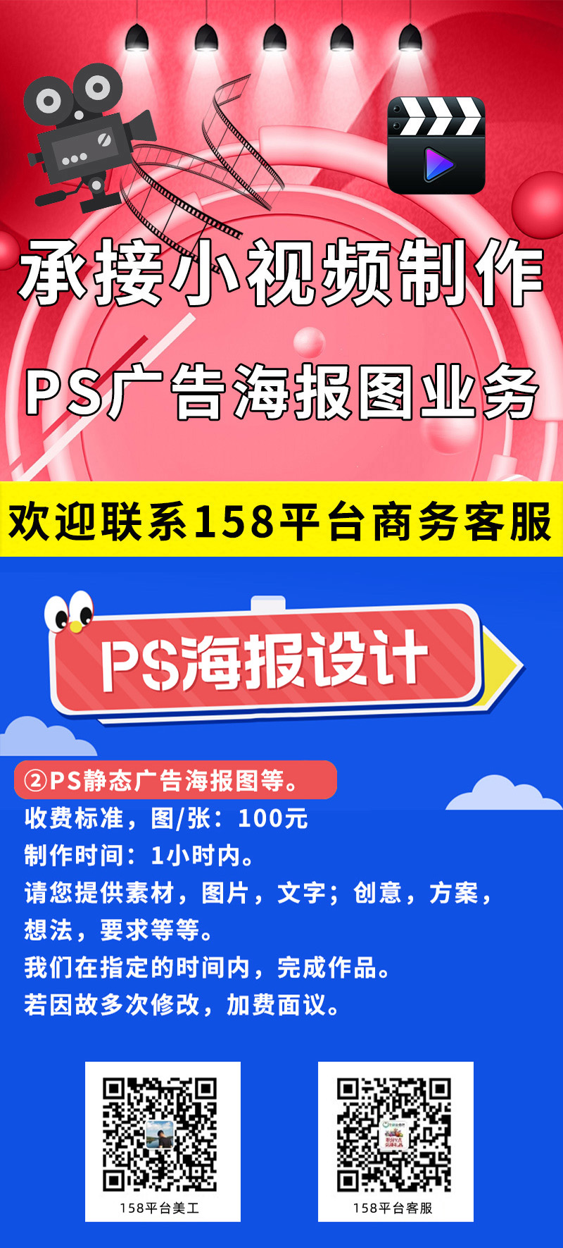 描述:承接小视频制作 PS广告海报图业务
