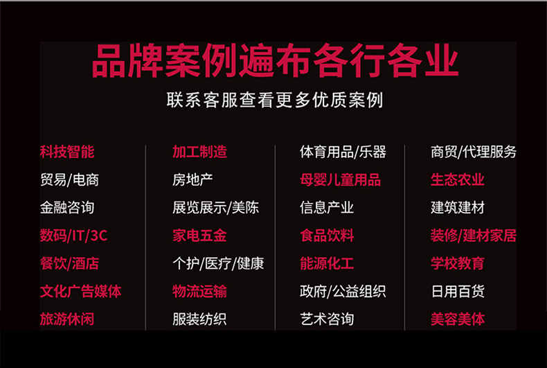 品牌形象建设:LOGO、VI 、网站、画册、演绎PPT、包装、视频、宣传片、会展活动、新品发布、企业品牌辅导等 一站式品牌整合设计服务!