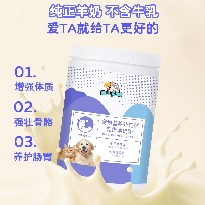 描述:宠物羊奶粉宠物营养补充剂贴牌代加工生产山东厂家OEM