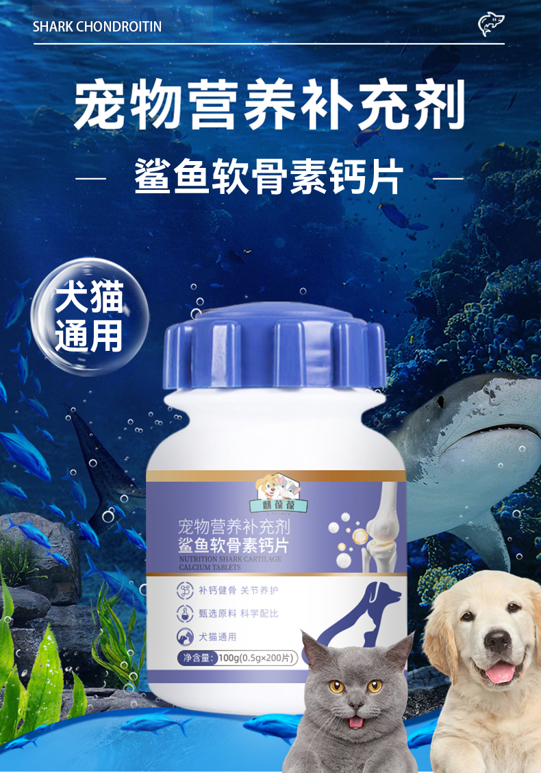 关键词:宠物营养补充剂鲨鱼软骨素钙片OEM代加工山东