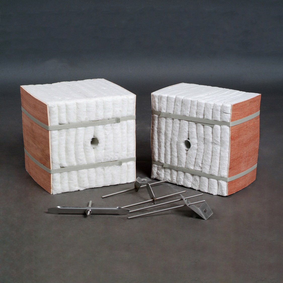 描述:山东民业保温材料有限公司,我公司生产硅酸铝陶瓷纤维模块,是采用硅酸铝陶瓷纤维毯,按纤维组块结构.尺寸使用自主研发的机械设备制作而成。加工过程中,均保证一定比例的压缩量,以保证模块安装完成后向不同方向膨胀,使模块间相互挤压成一个无缝隙的整体。产品配套锚固系统可与窑炉壳体牢固连接,尺寸精确,安装简便。采用陶瓷纤维模块可提高炉衬施工速度,减轻窑炉重量,大幅度提高窑炉的节能效果。