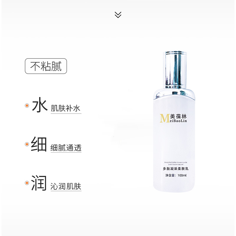 功 效:含有多肽精华成分,柔滑乳状质地,补充肌肤水分,舒润肌肤,长期使用可使肌肤滢润有光泽。