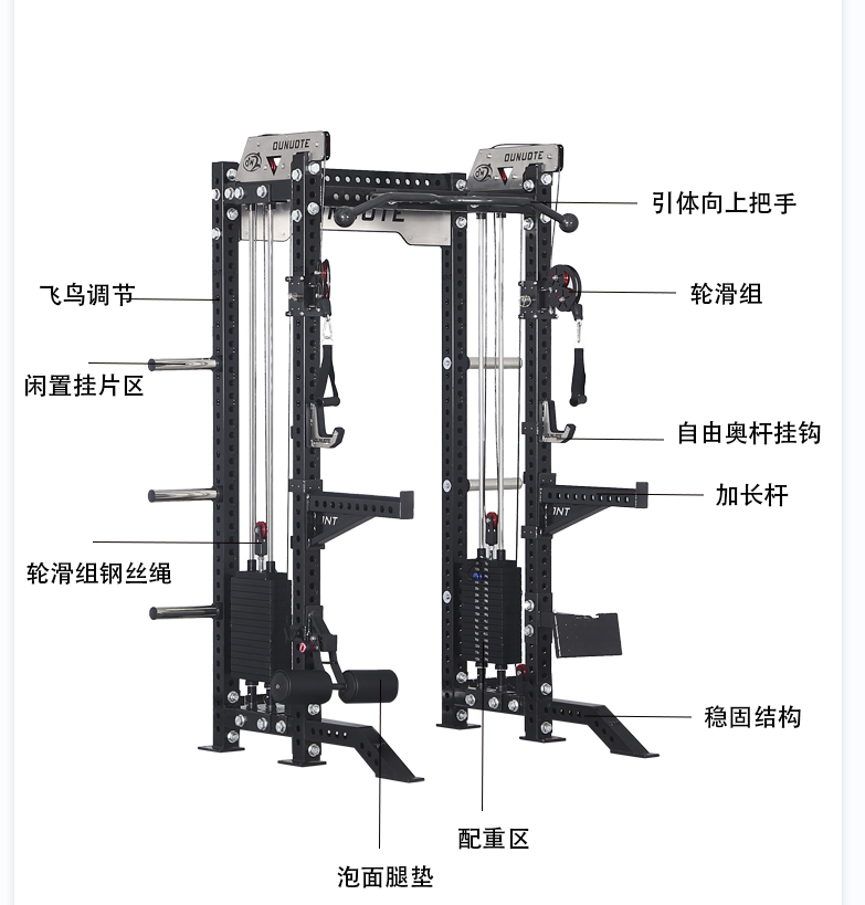 当然,这款史密斯不止如此,他还带有飞鸟拉力把手和宽握位训练横杆,增加了N种训练功能。一台训练器功能齐全,全方位的塑造肌肉线条,好身材练出来。